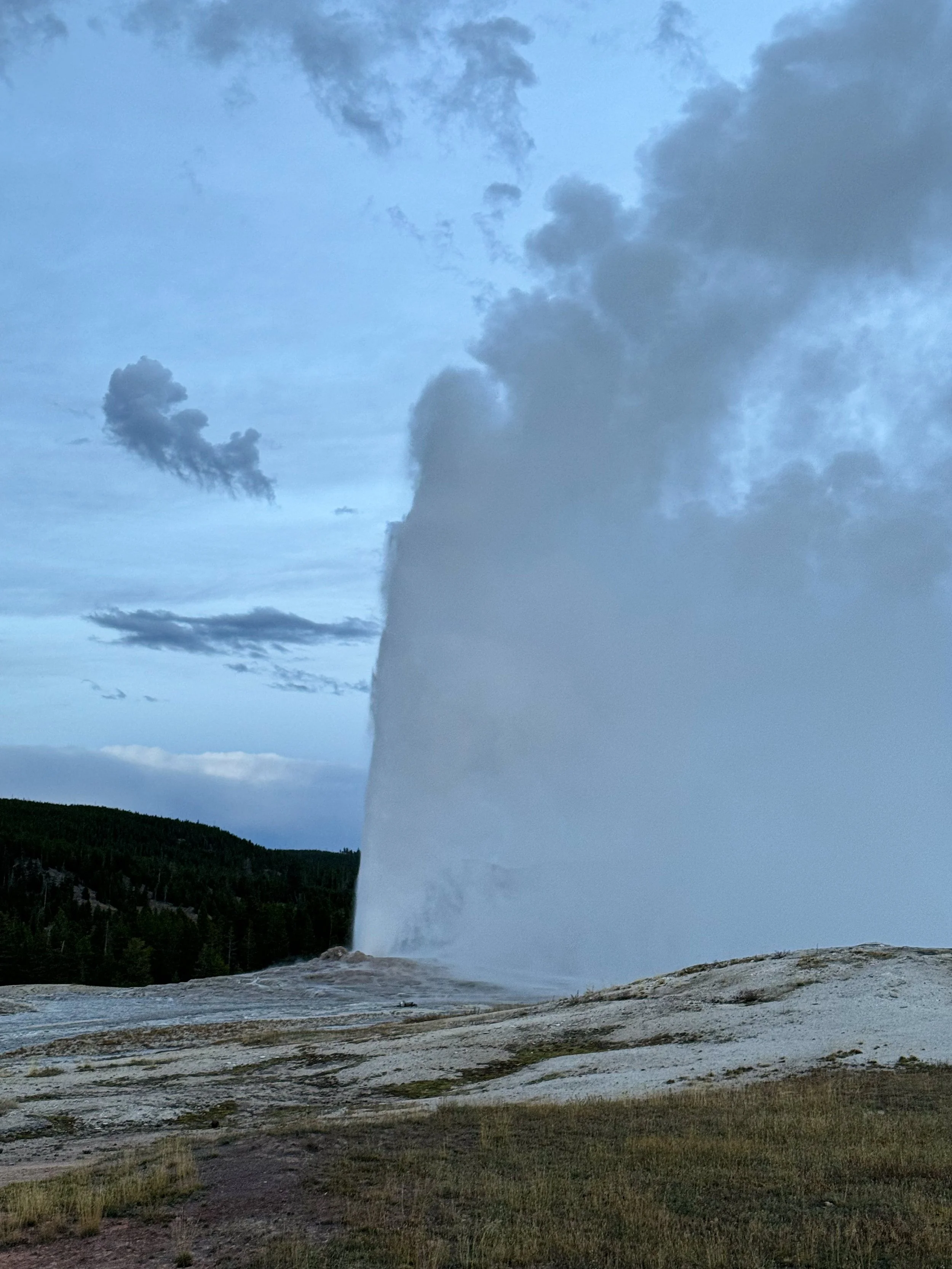 Old Faithful is known as the most popular geyser in the park. The eruptions vary, you can check the times it’s due to erupt at the lodge located next to the geyser or at the visitors center. You can also find the schedule on this website, https://www.nps.gov/yell/planyourvisit/geyser-activity.htm#collapseOne1. When this beautiful geyser erupts it can reach anywhere from 100-180ft in the air, creating a large cloud of steam.