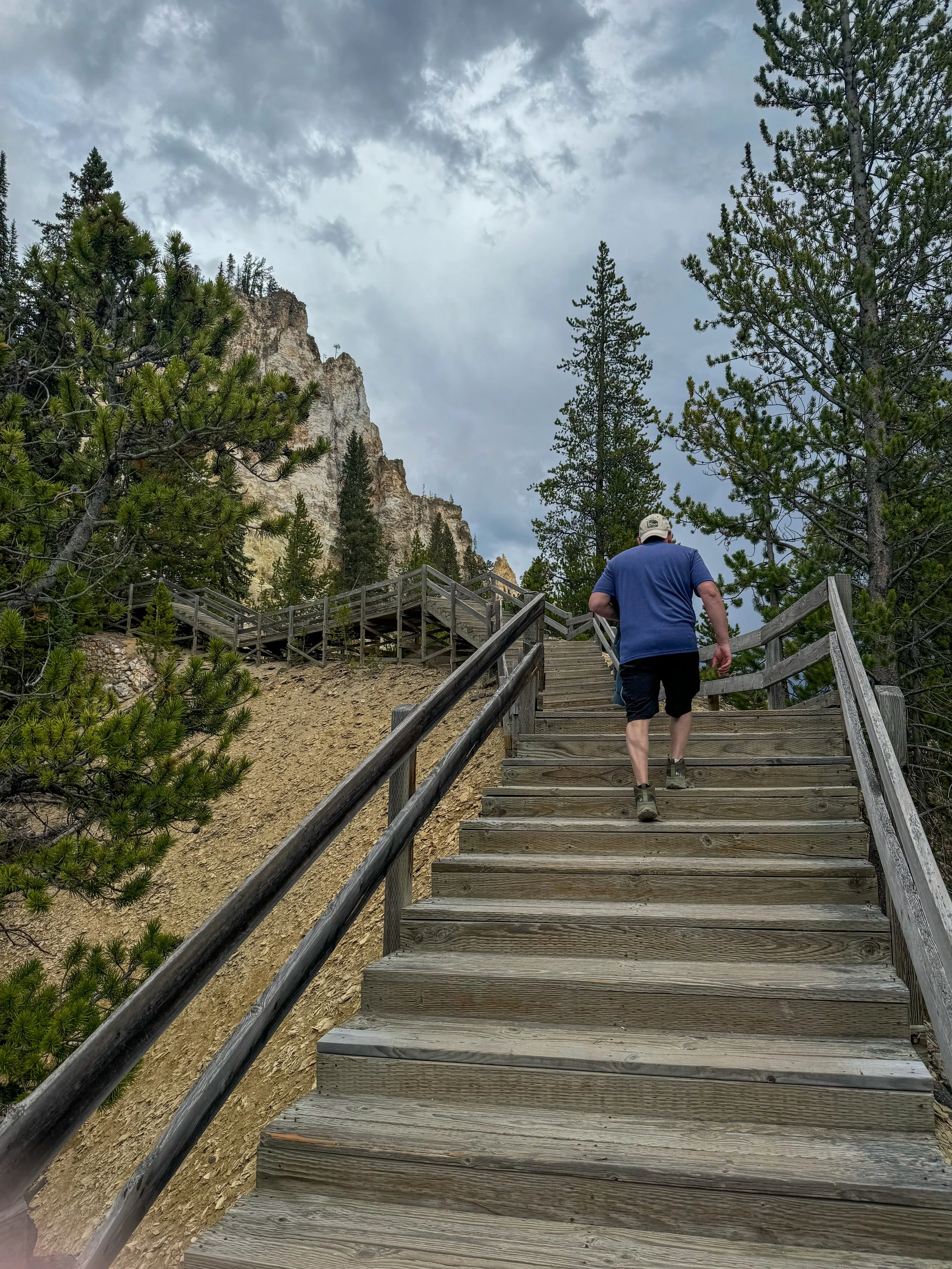 In my opinion, the Red Rock Trail gives you the best views of the Lower Falls and canyon. This is a 1.2 mile roundtrip out & back trail with a 500ft change in elevation. The hike begins at the Lookout Point and is considered difficult. As you hike down the Red Rock Trail it’ll bring you deep into the canyon, getting as close to the base of the Lower Falls as possible. Just be prepared, the big change in elevation makes for a tiring hike back up but soo worth it. This trail does close in the winters so be sure to make sure it’s open before going.